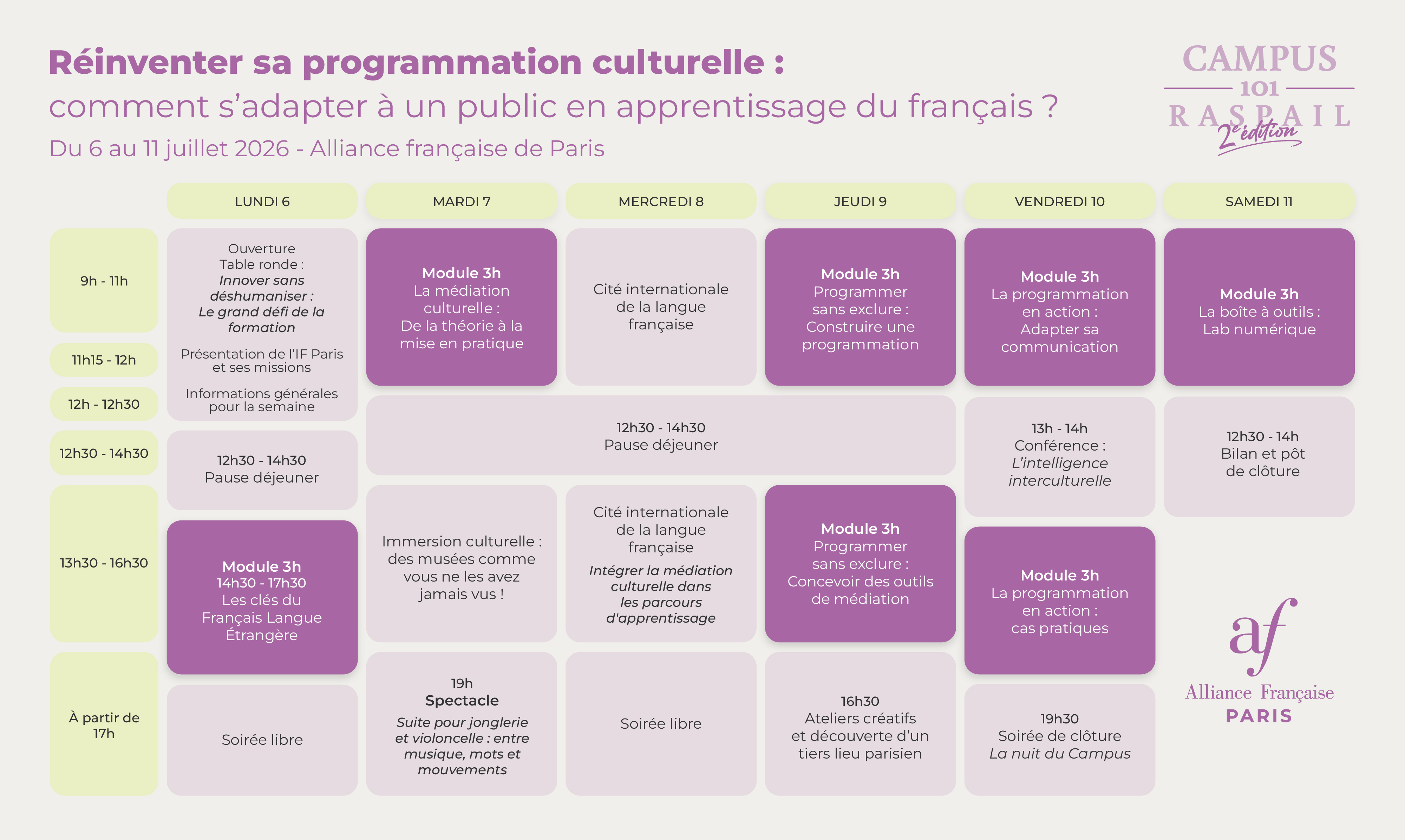Dates | Du 6 au 11 juillet 2026 - Alliance française de Paris